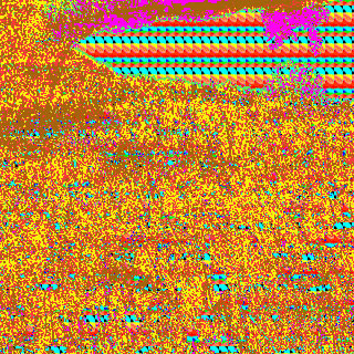 NumberofManufacturingIndustriesbyNumberofProductClassesinanIndustry is difficult to look at. Not because the material is offensive or rude, but rather, because it increasingly challenges human perception. The background consists of several multi-colored gif animations, on top of which is bright yellow bold face text written down the left hand side of the browser window. Arranged in patterns, the background flashes on and off, as the eye strains to focus and read the text. The words waver between legibility and illegibility, depending on whether or not that particular letter falls on top of a darker or lighter area of the screen. If one can manage to read the text, some of the following phrases can be deciphered: “Rhetoric of Boredom…or maybe an overabundance of information…packing is really better than the thing…being afraid of disaster means listening and taking things in, internally.” The text resembles Jenny Holtzer’s use of run-on text with little to no punctuation, ongoing fragments of thoughts and incomplete sentences. The text’s lack of finitude mirrors the ongoing visual animations behind it, both metaphors for the tension between absorption and boredom experienced in a culture of endless mass-produced commoditities that the work takes its title from.