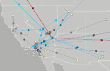 Trevor Paglen's Unmarked Planes and Hidden Geographies uses the flight plans of a series of unmarked airplanes to index a web of secret or 'black' sites in the southwestern United States. His presentation of this data creates a tension between what is often conceived of as wide-open civilian airspace and the highly classified realm of the Military Industrial Complex. This contradiction between public and private is further plunged in Paglen's use of public information such as refueling records and Federal Aviation Administration documents to piece together a narrative about the means of transport employed by a secret society of 'public' employees.