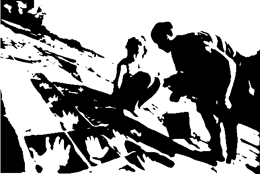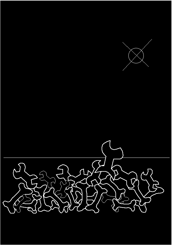 I started off by photocoping my hand, then I scanned it into a computer, reduced the definition and printed it out. This produced a pixilated image from which I could compile the 7300 sheets of A4, ready to be taken to the rock.